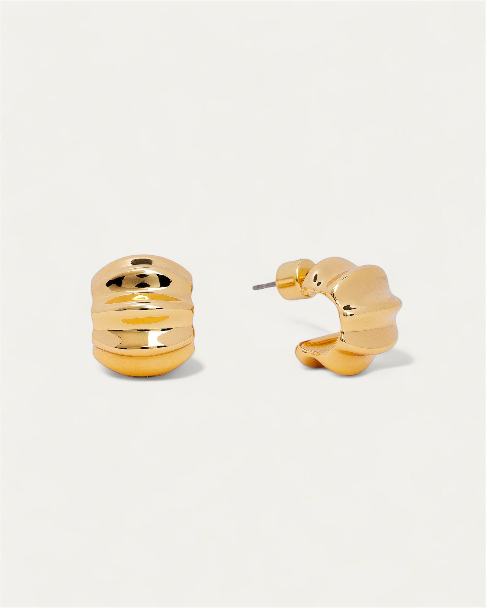 The BAGGY earrings featured 16K Gold Filled texture studs. An extra layer of tarnish resistance( E-coating) is added to extend the life span of our Jewelry.