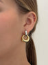The CHLOE Earrings featured Two Tone Hoops 925 Sterling Silver and 16K gold filled Pendant. An extra layer of tarnish resistance( E-coating) is added to extend the life span of our Jewelry.