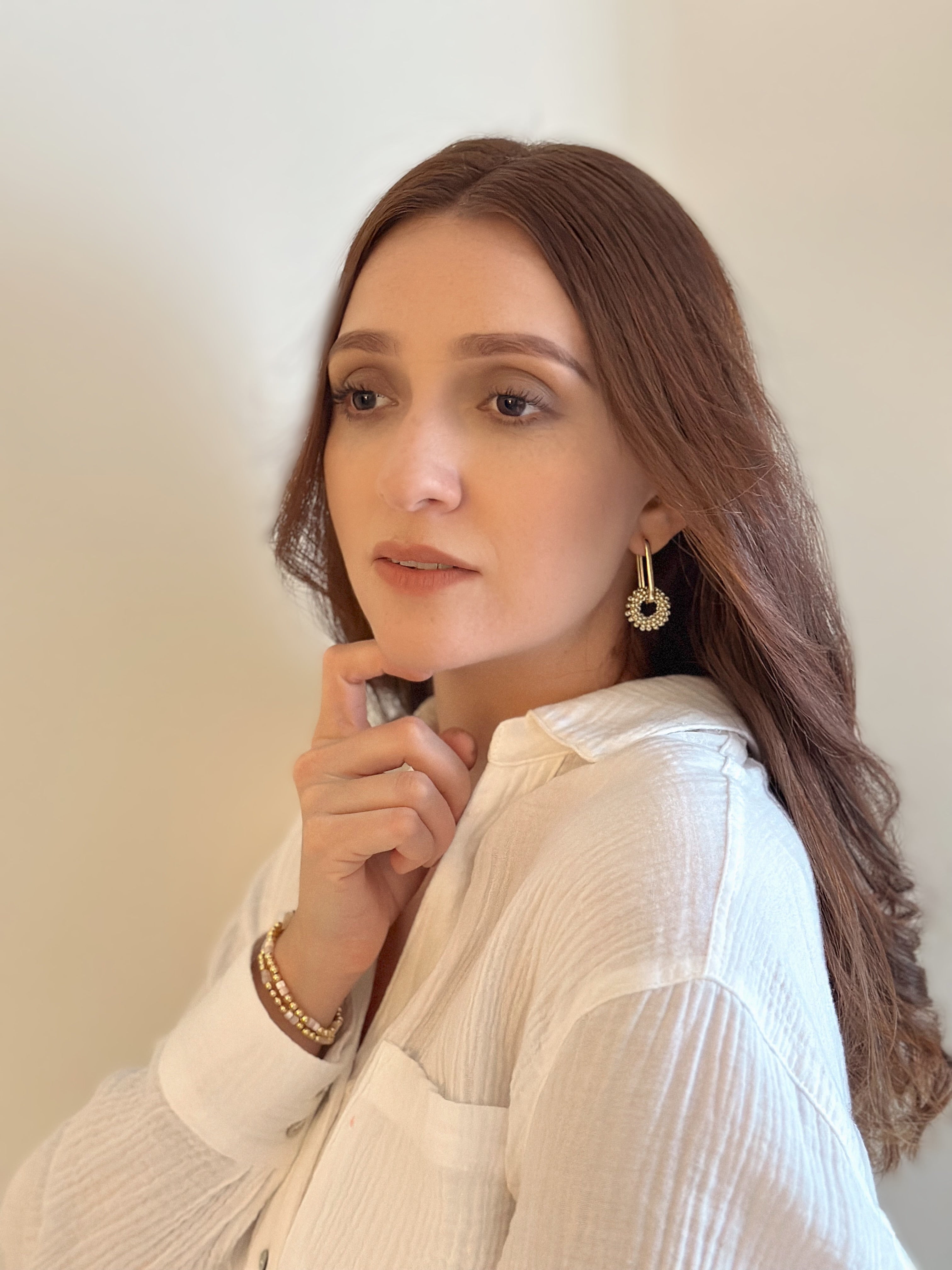 The FREYA hoops featured 14K Gold Filled oblong hoop with silver beads with 14K gold plated wire.