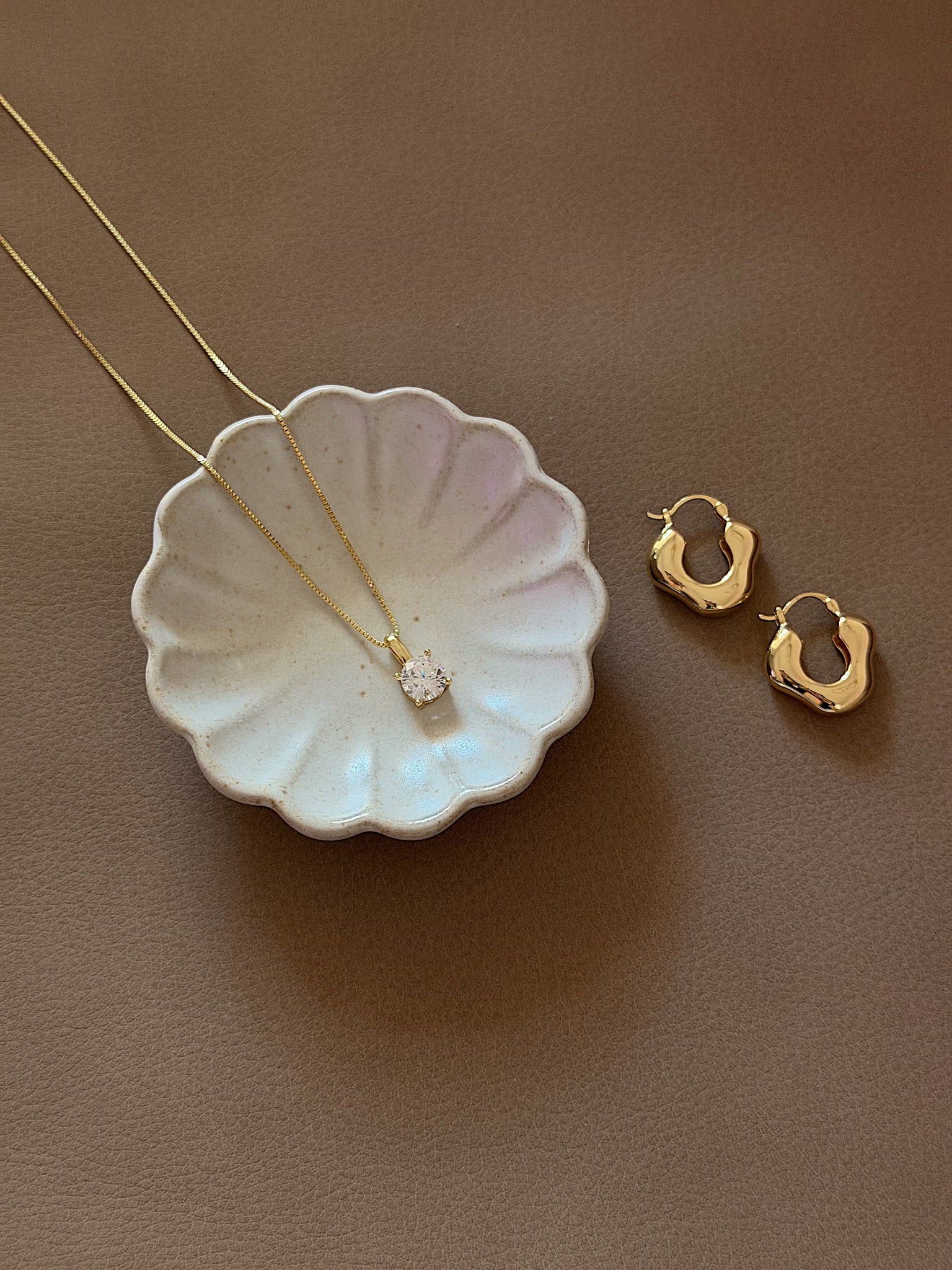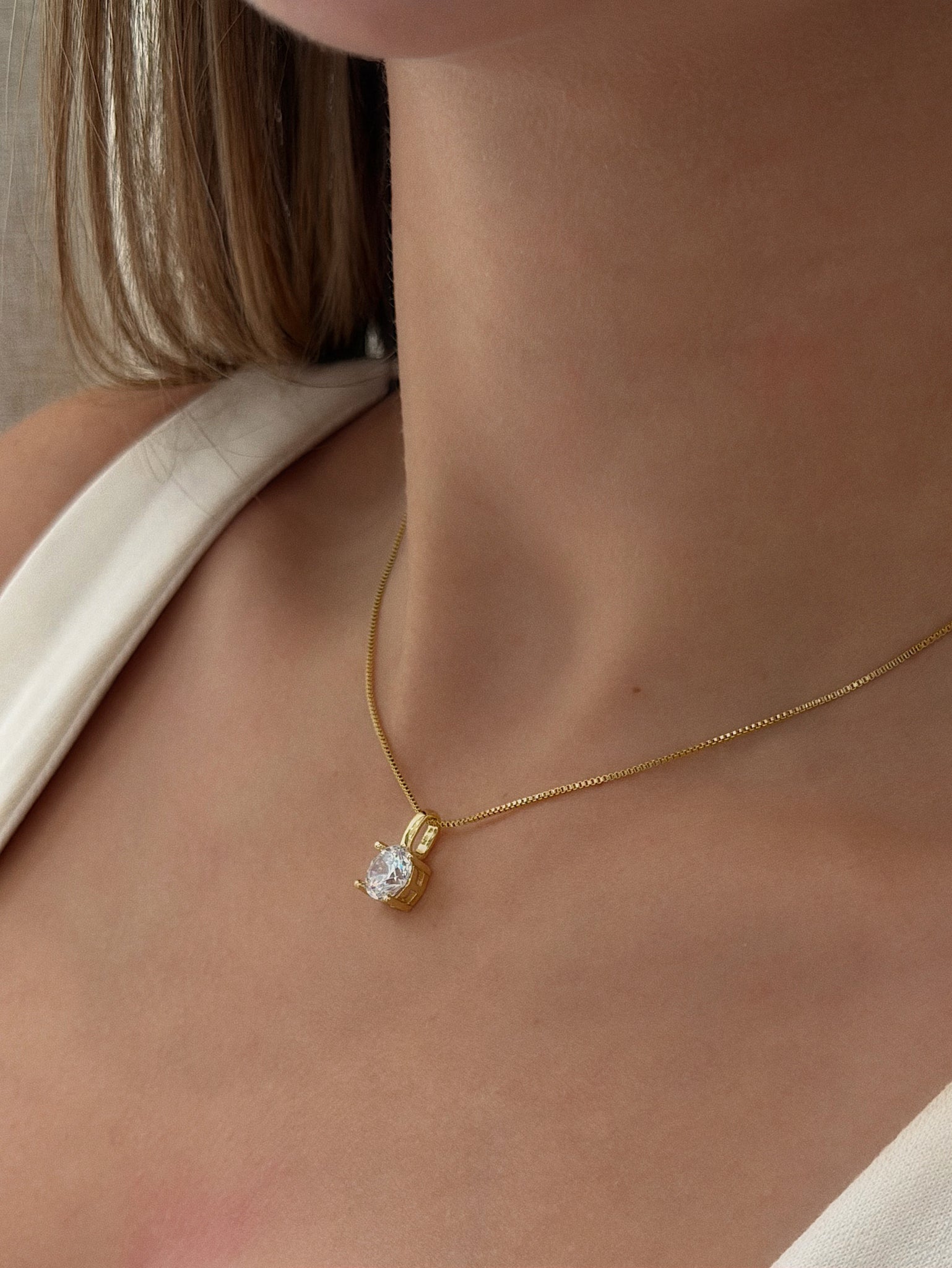 The LOU Necklace featured dainty chain with a solitaire CZ pendant. Lou is designed to highlight the beauty of your neckline.